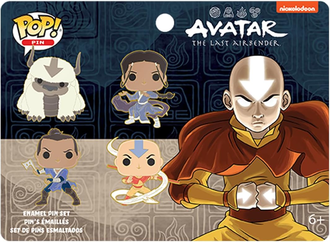 Join Avatar Aang and his friends on an adventure to master the four elements with the Funko Pop! Pin Set: Nickelodeon - Avatar: The Last Airbender Characters 4-Pack! This delightful set includes four enamel pins, each approximately 1.5 inches tall, showcasing your favorite characters—Aang, Katara, Sokka, and Appa—in their signature Pop! style.With gold-colored hardware and signature Funko crown debossing, these pins add a playful and charming flair to your backpack, jacket, or collection. Whether you’re a fan of water, earth, fire, or air, these pins are the perfect way to celebrate the world of Avatar while showing off your love for this iconic series.