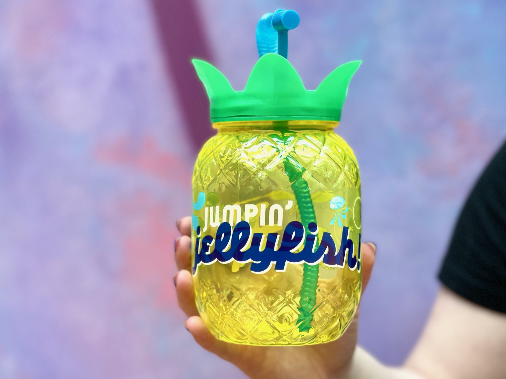 Get ready to dive into fun with the SpongeBob Jumpin’ Jellyfish Pineapple Tumbler – only available at Nickelodeon Universe! This 20 oz tumbler brings the undersea energy of Bikini Bottom to life with a bright yellow pineapple design topped with green leafy detail and a fun blue bendy straw.