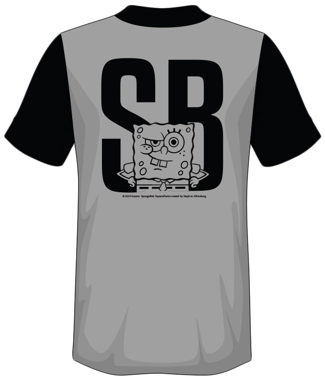 This isn’t your average SpongeBob merch. The SB Stealth Jersey is built for fans who like their gear subtle but still packed with character. Featuring a sleek gray body with bold black sleeves and collar, this jersey keeps it monochrome in the front — but flip it around and you’ll find a massive SB monogram with SpongeBob breaking through in a gritty, sketched style.